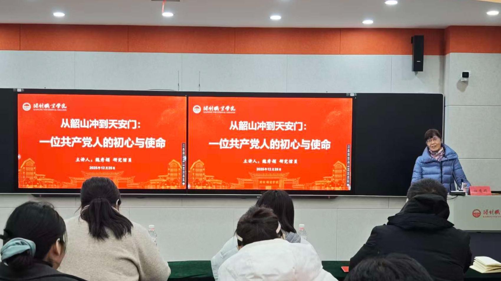 本次讲座特邀郑州电力职业学院魏秀娟研究馆员担任主讲人,以“从韶山冲到天安门:一位共产党人的初心与使命”为题,吸引了全校部分教职工到场聆听。讲座中,魏秀娟研究馆员循着毛泽东主席的革命足迹,从韶山的初心萌芽讲到天安门的使命担当,深刻阐释了中国共产党人坚守初心、勇担使命的精神内核,带领在场教职工重温峥嵘岁月,感悟红色精神的时代价值。